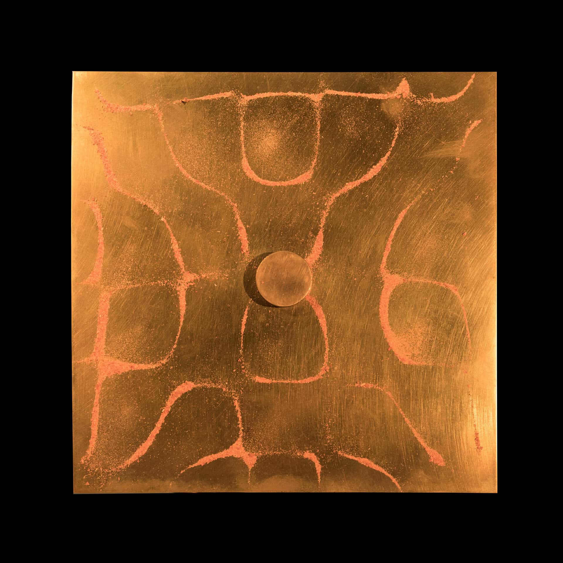 Mais voilà qu’un nouveau défi s’offre à elle. Napoléon, qui était féru de sciences et de mathématiques en particulier, assiste à l’expérience d’Ernst Chladni, acousticien allemand. Ce dernier recouvre une plaque de cuivre de sable fin, uniformément, et fait vibrer la plaque à l’aide d’un archer. Alors le sable se meut et dessine de magnifiques figures géométriques ! En fait le sable va s’accumuler aux endroits où la plaque ne vibre pas.