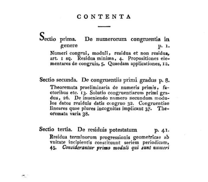 En 1801, un ouvrage révolutionnaire en théorie des nombres vient de paraître, Disquisitiones arithméticae (Recherches arithmétiques) de Carl Friedrich Gauss. Gauss est un mathématicien allemand particulièrement brillant. Il sera surnommé « le Prince des mathématiques ». Dans cet ouvrage, il développe notamment la notion de congruence. Cet ouvrage n’est pas d’abord bien accueilli par ses contemporains, il est trop en avance sur son temps. Sophie, qui, par son éducation autodidacte, a moins de préjugés, en saisit tout de suite la portée, et l’intérêt pour ses recherches sur la conjecture de Fermat.