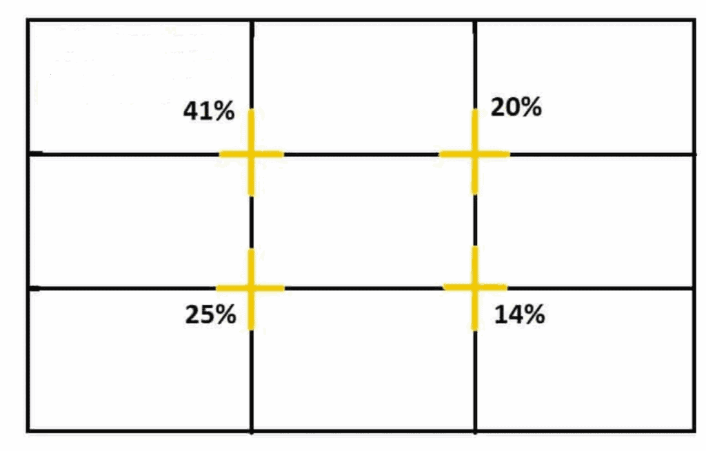 Les pourcentages représentent le temps que va passer le regard sur chaque point (du moins pour les personnes qui lisent et écrivent de gauche à droite, sinon c’est l’inverse).