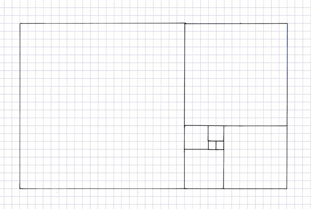 1,1,2,3,5,8,13,21,34,55,89, 144,233,377,610,987,1597, Dans cette suite de nombres, chaque nombre (sauf les deux premiers) est obtenu en ajoutant les deux précédents. Le rapport de deux nombres de Fibonacci consécutifs tend vers ϕ. Autrement dit, en construisant un rectangle de côté deux nombres de Fibonacci consécutifs, on obtient un rectangle qui a à peu près les bonnes proportions, pas sûr que la différence soit visible à l’œil nu.