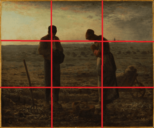 Voici un autre exemple avec le tableau l’Angélus de Millet, tableau peint entre 1857 et 1859 :